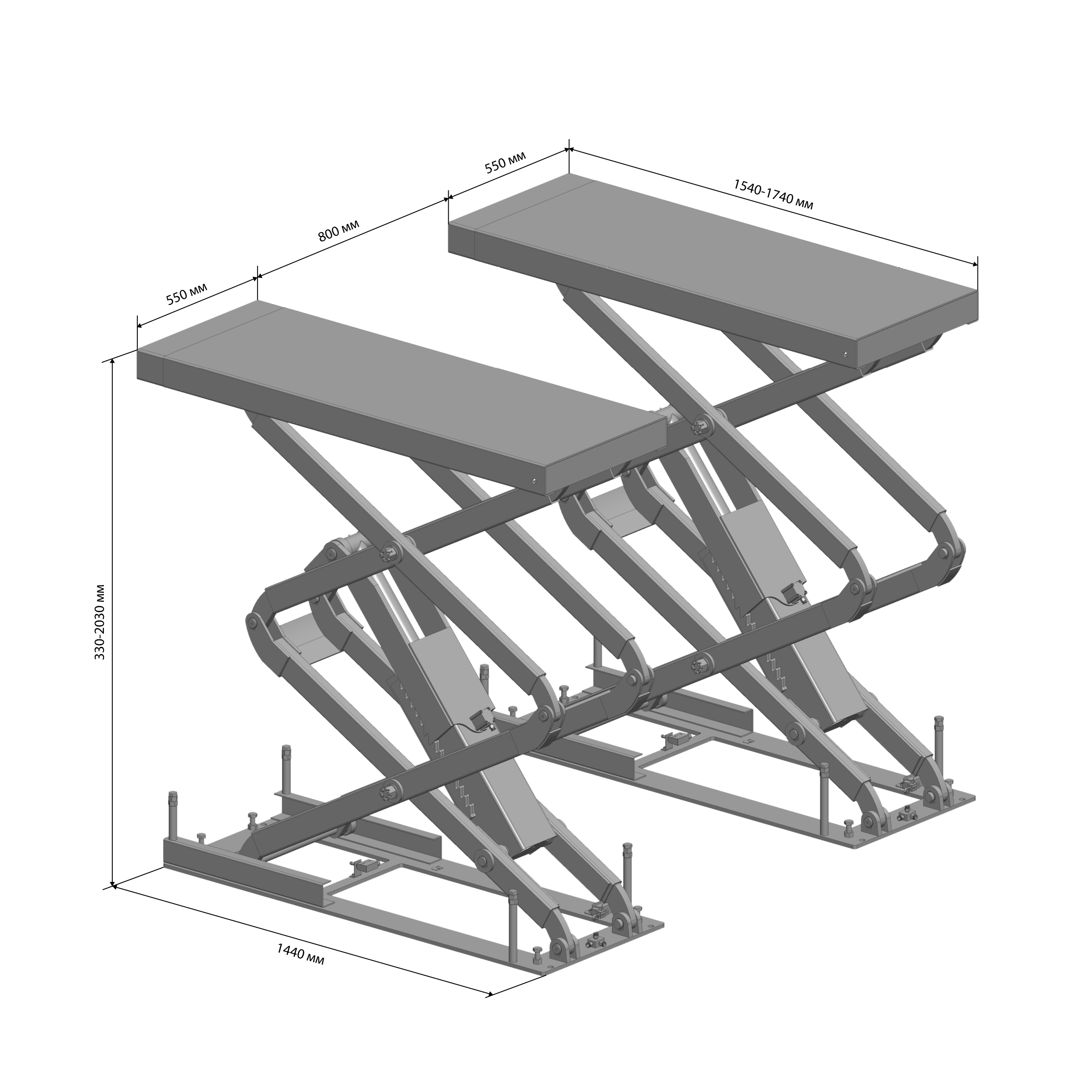 Надежная гидравлическая синхронизация платформ обеспечивает безопасность работы подъемника